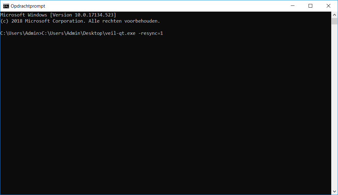 3. Place the following command behind the veil-qt.exe (it should look like this screenshot below).